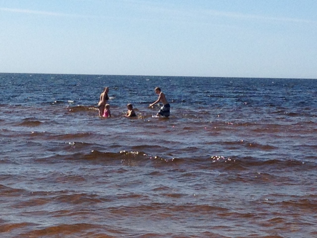 På kvällen var vi nere vid vattnet. Några modiga tog ett kvällsdopp. |